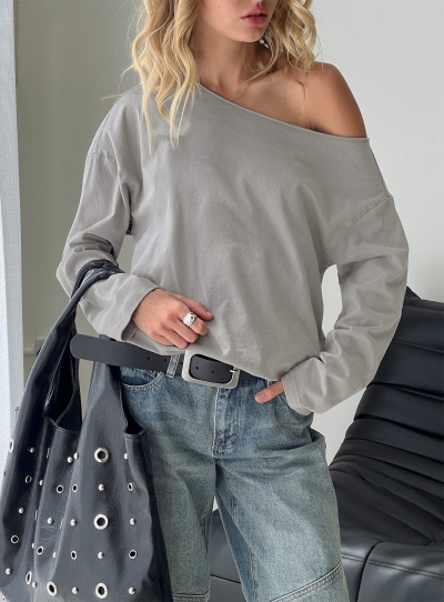 Karlyn Off Shoulder Long Sleeve Top Grey