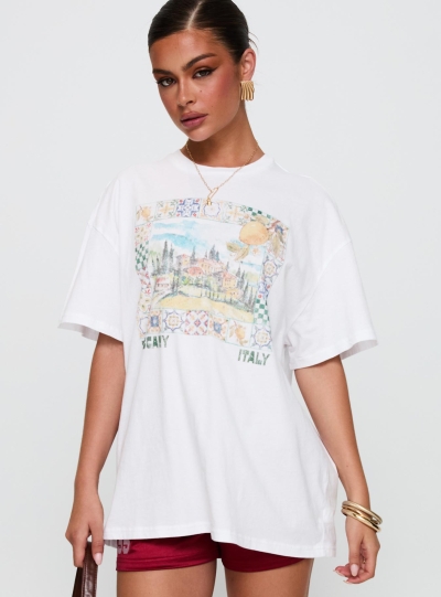 Love From Tuscany Oversized Graphic Top White