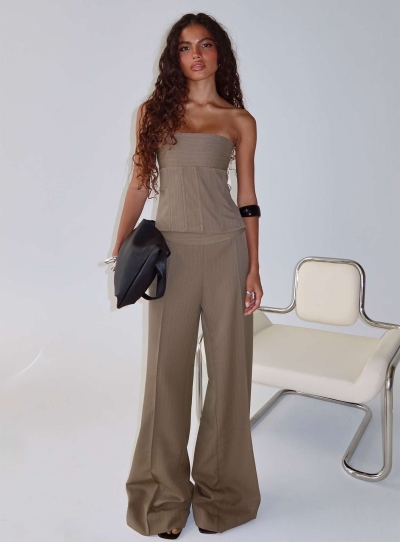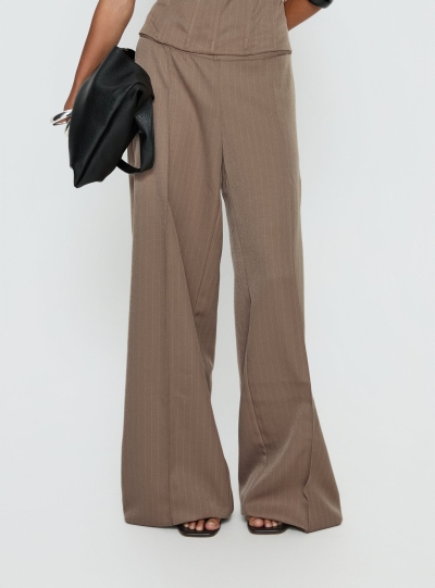 Madelle Mid Rise Straight Leg Pants Brown Pinstripe